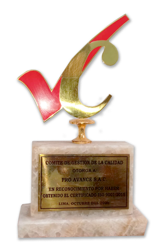 Reconocimiento por contar con la certificación ISO 9001 otorgada en el año 2020 por la Sociedad Nacional de Industria (SNI)